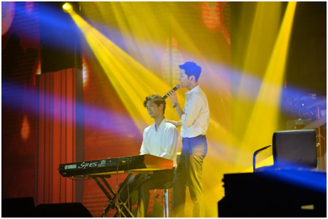 韩国艺人朴宝剑作为特别及粉丝来到现场为宋仲基助阵,,调皮的仲基欧巴识破预谋惊喜,,并且故意安排二次出场“表露惊讶”。。随后仲基欧巴邀朴宝剑弹琴伴奏,,送上《太后》的主题曲《少女》,,两人第一次的合作可谓默契连连!!