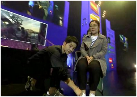 终于到了令人期待的游戏环节,,干瞪眼、、、、赞赞赞、、、、石头剪刀布等让幸运粉丝又一次亲密接触仲基欧巴,,并获得了由偶像男神亲手递出的来利国际旗舰厅套装作为参与奖品。。。。